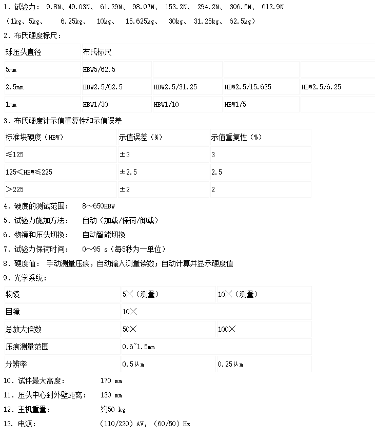 1、本儀器具備7級(jí)試驗(yàn)力,8種測(cè)試的布氏標(biāo)尺任意選擇;